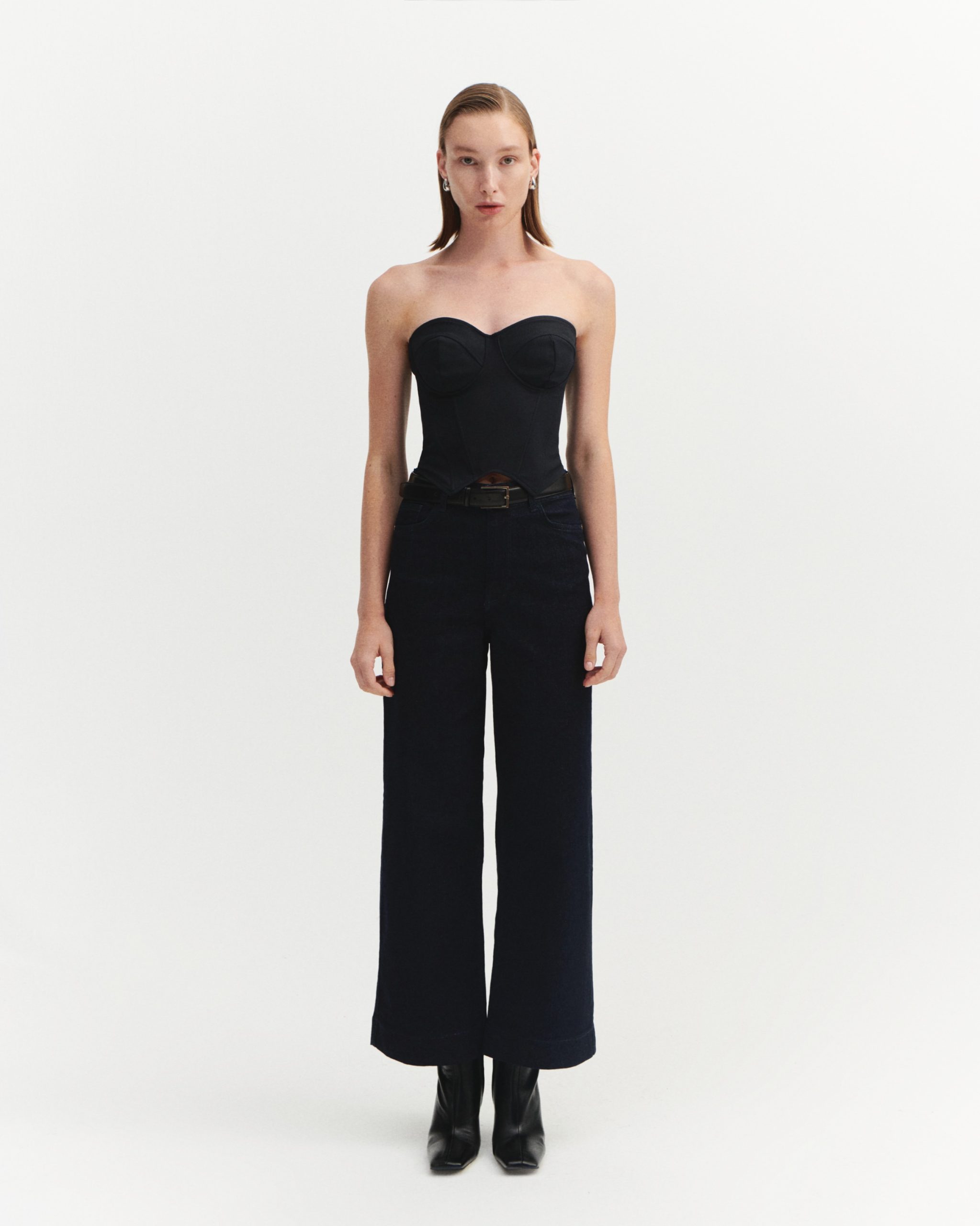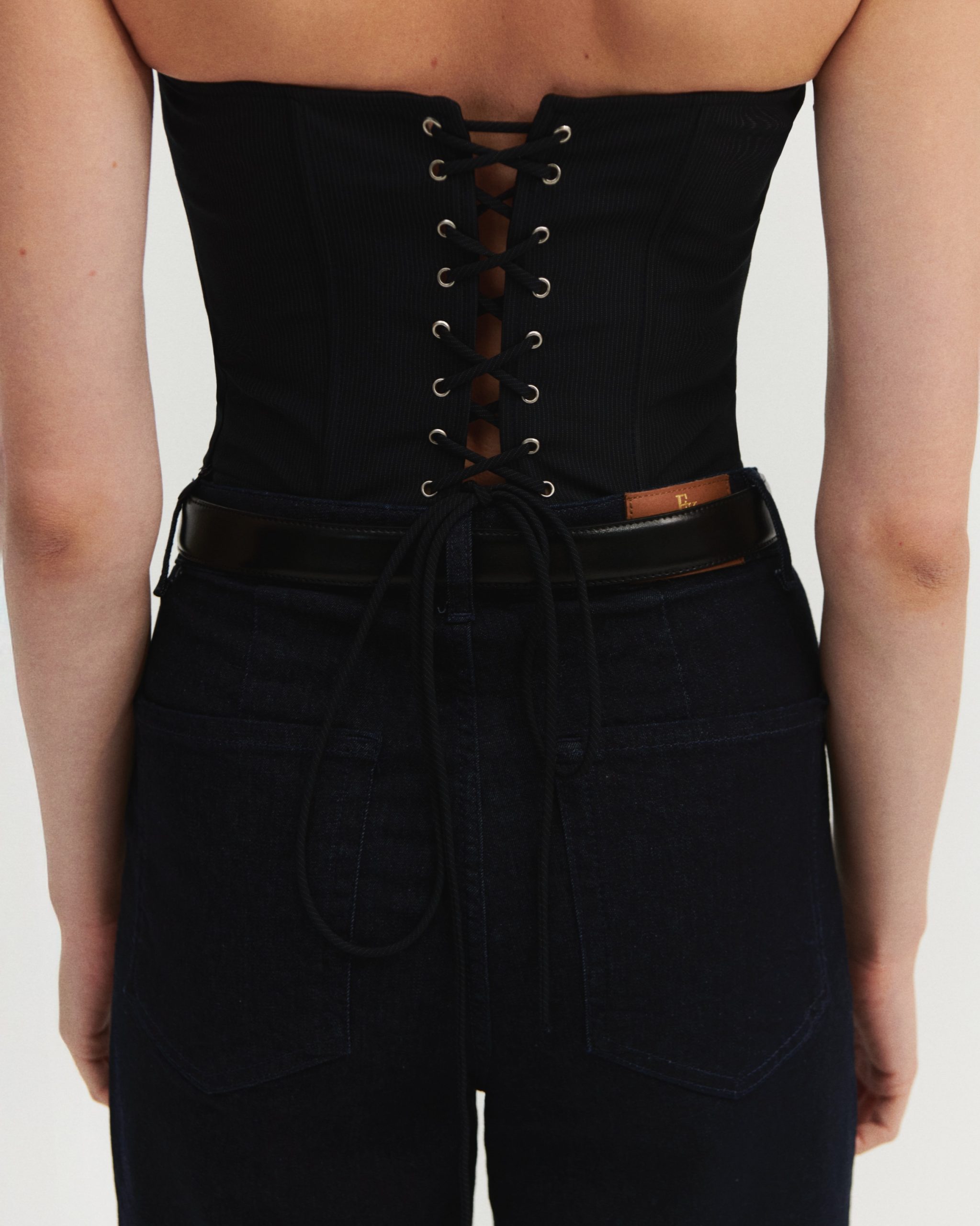 ÜRÜN AÇIKLAMASI: Kuplı, yandan gizli fermuar kapamalı, balenli, sırtında kuşgözü ve bağlama detaylı korse top.