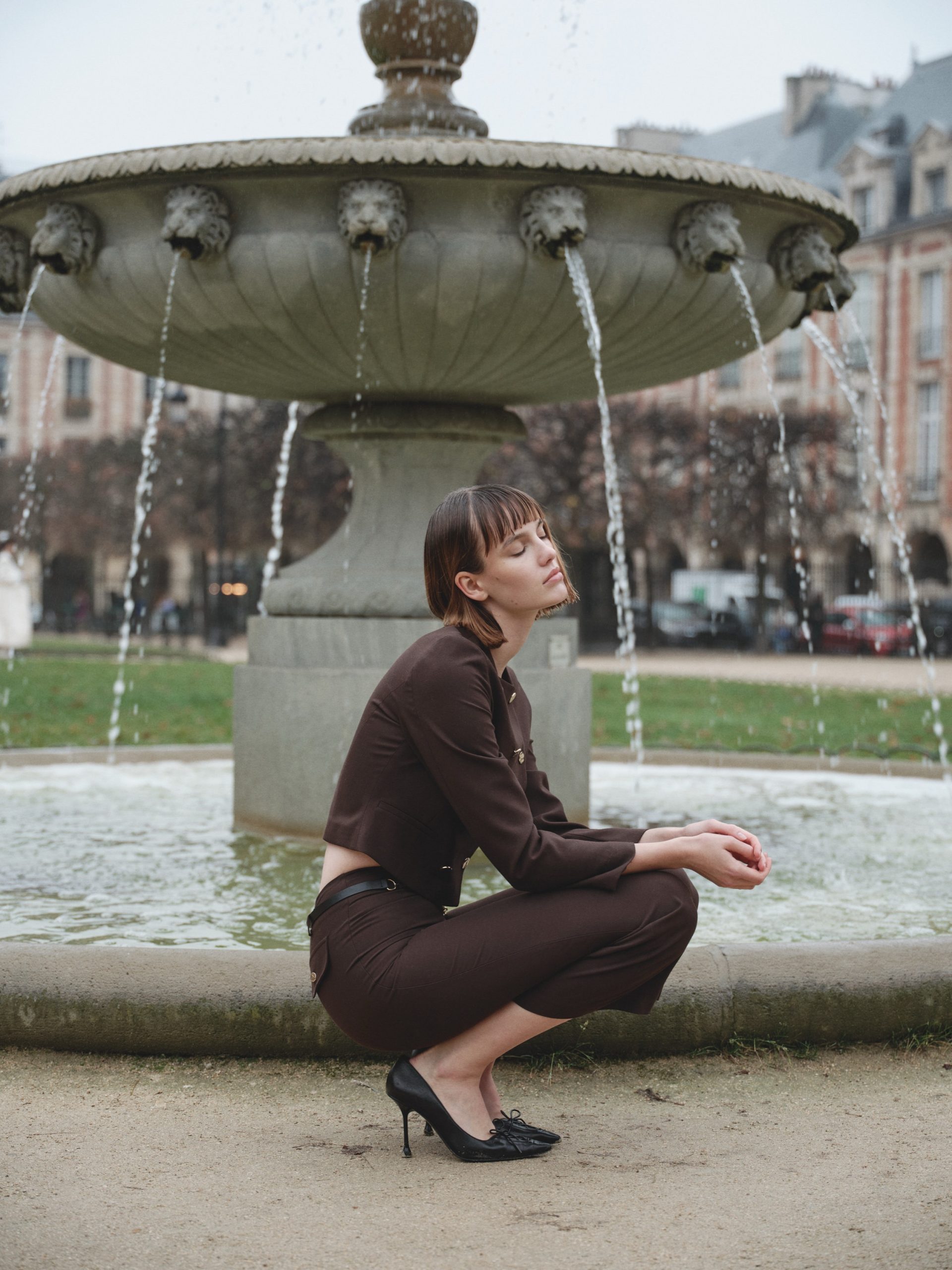 KISA KRUVAZE BLAZER CEKET – ZİNCİRLİ KEMERLİ CROP PANTOLON